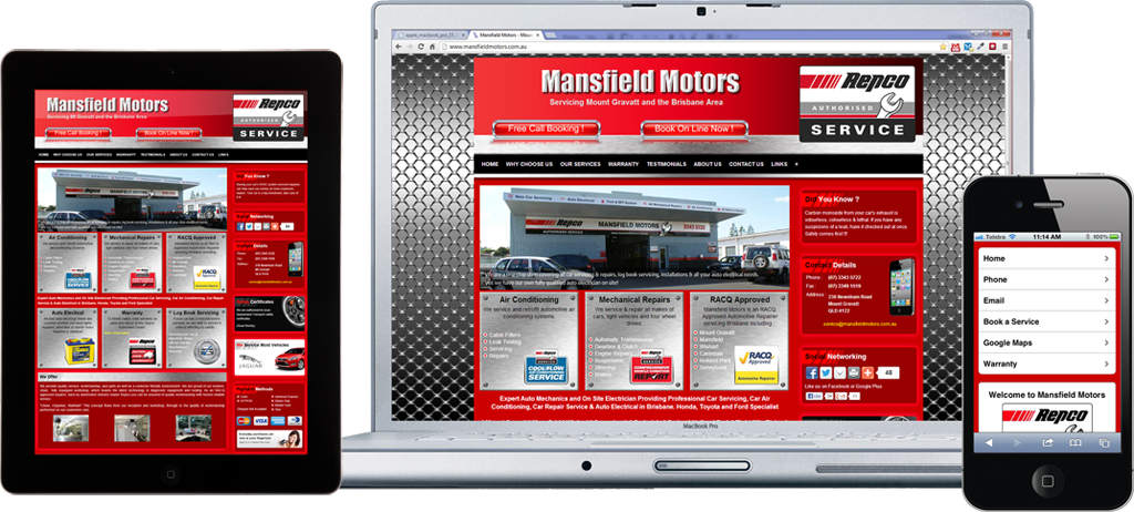 The image below shows a typical website that uses a smart phone template - The smart phone website is a different layout from that used on a Laptop and a Tablet.